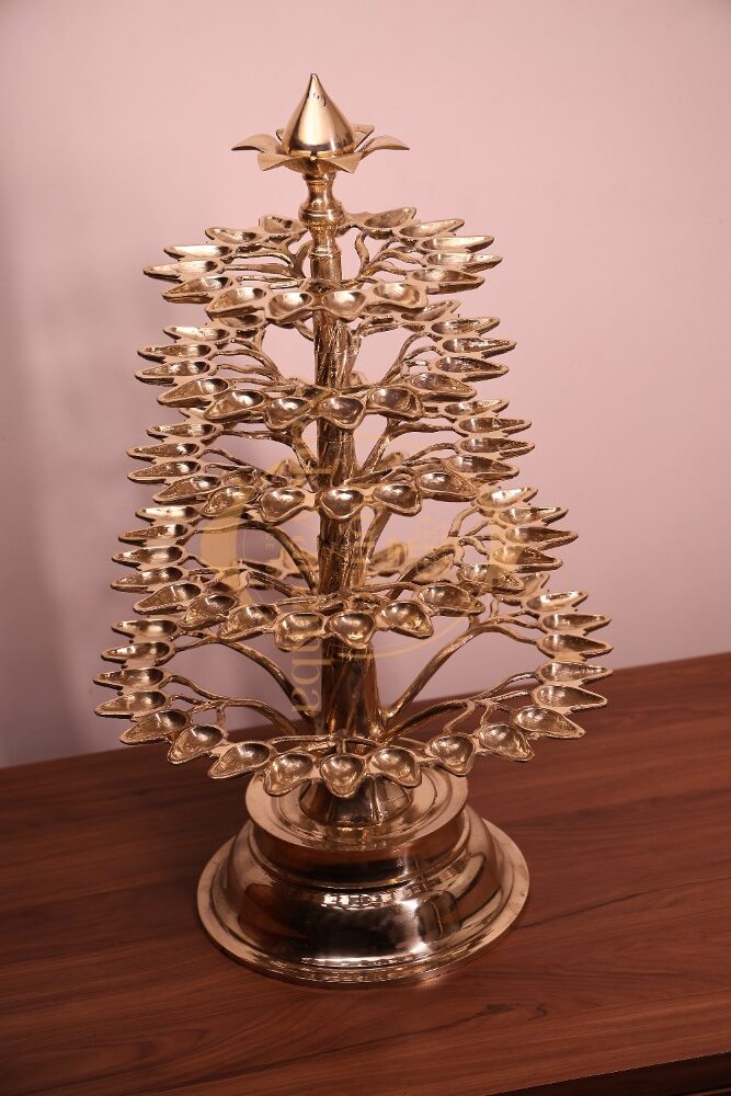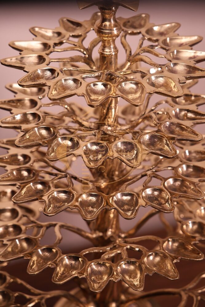 The word “Alu” refers to the Banyan Tree, one of the most sacred trees in Indian culture. Known as the Tree of Life, the Banyan tree spreads its roots endlessly, symbolizing eternal growth, wisdom, and shelter. Just as the tree branches out and supports life around it, the Alu Vilakku spreads light in every direction.