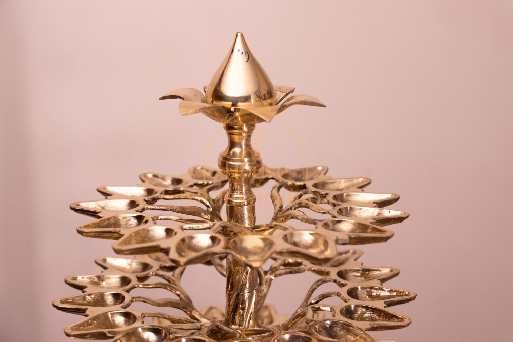 This majestic lamp is designed with multiple branches carrying 101 wicks, resembling the spreading canopy of the Banyan tree. When all the wicks are lit, the lamp creates a breathtaking halo of light that represents spiritual awakening and collective energy.
