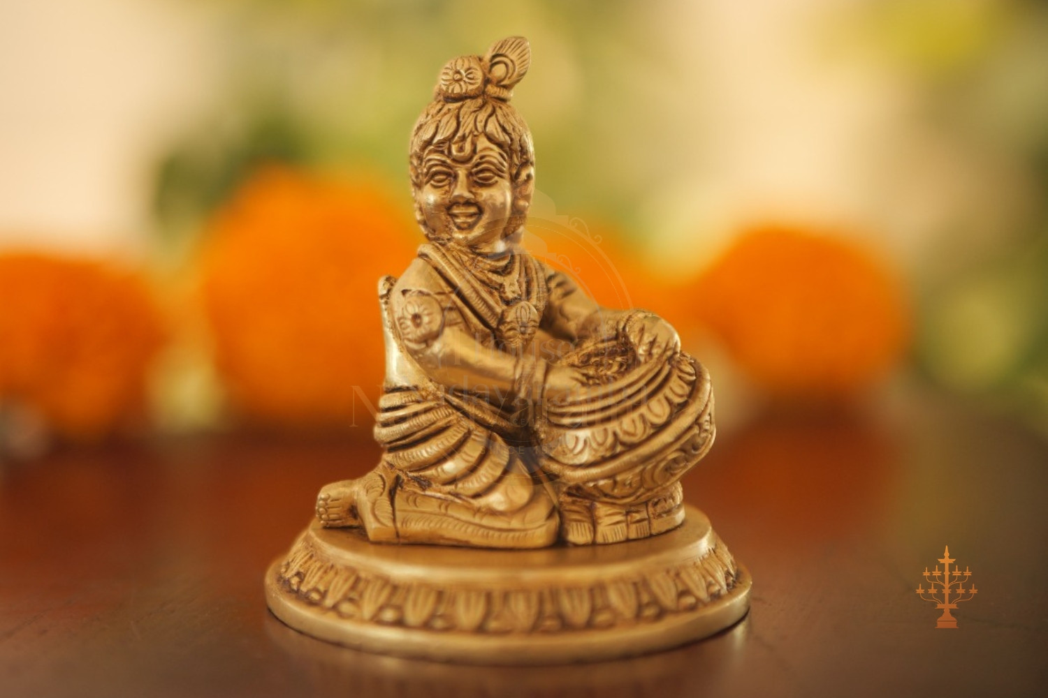 Celebrate devotion and tradition with the House of Nadavaramba, Divine Bal Krishna Brass Idol, a charming representation of Krishna as Ladoo Gopal holding his favorite sweet. This intricately handcrafted brass idol beautifully captures the playful innocence and divine grace of baby Krishna. Designed in a compact 3.5-inch size, it fits perfectly in home altars, office desks, pooja shelves, and spiritual corners. The antique brass finish enhances its traditional appeal while ensuring long-lasting durability. Ideal for auspicious occasions like Krishna Janmashtami, Vishu, baby showers, naming ceremonies, and housewarming gifts, this idol symbolizes prosperity, joy, and divine blessings.