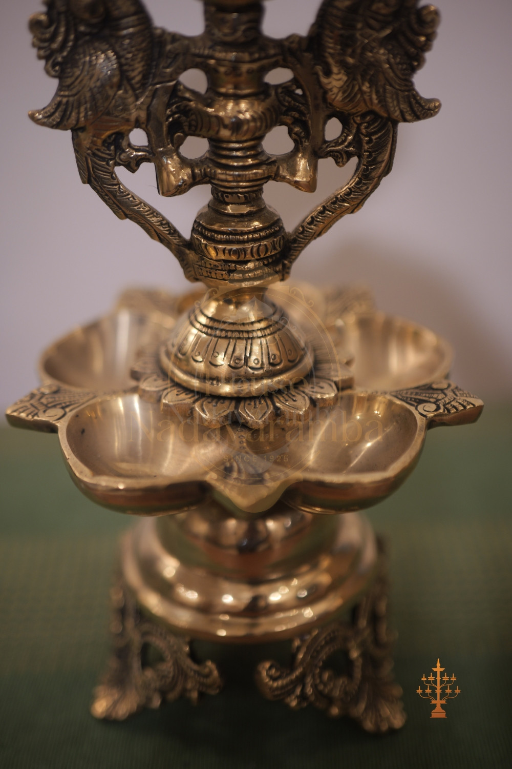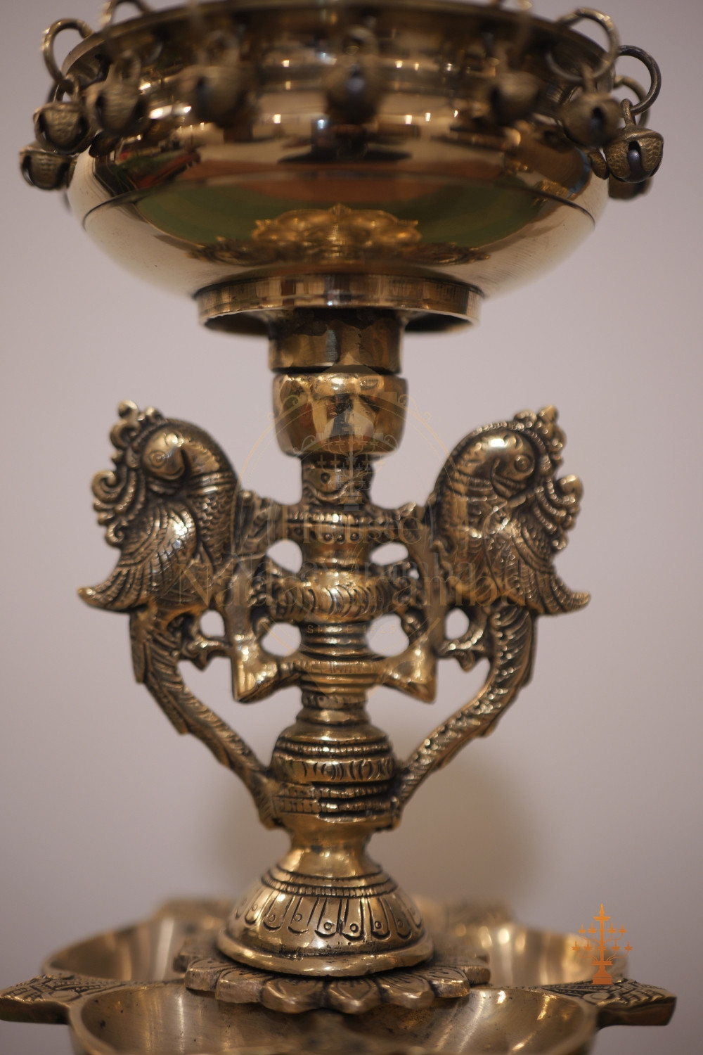 Inspired by the timeless beauty of Kerala décor traditions, this Brass Stand Uruli with Parrots and Bells blends artistry with cultural symbolism.