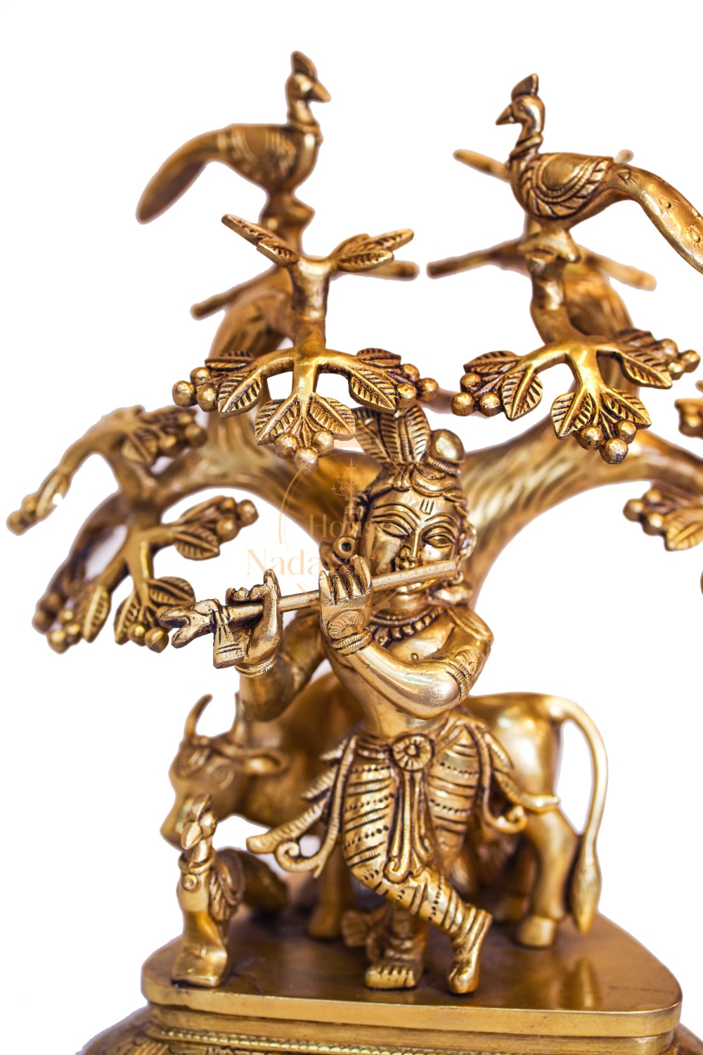 Compact handcrafted Krishna with cow idol. Unique handmade finish. Represents simplicity, devotion, and rural divine life.