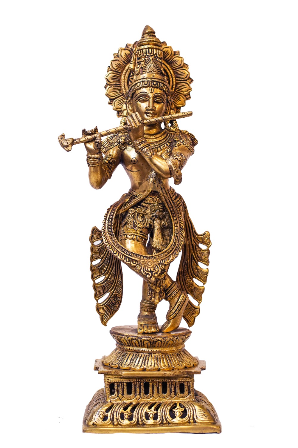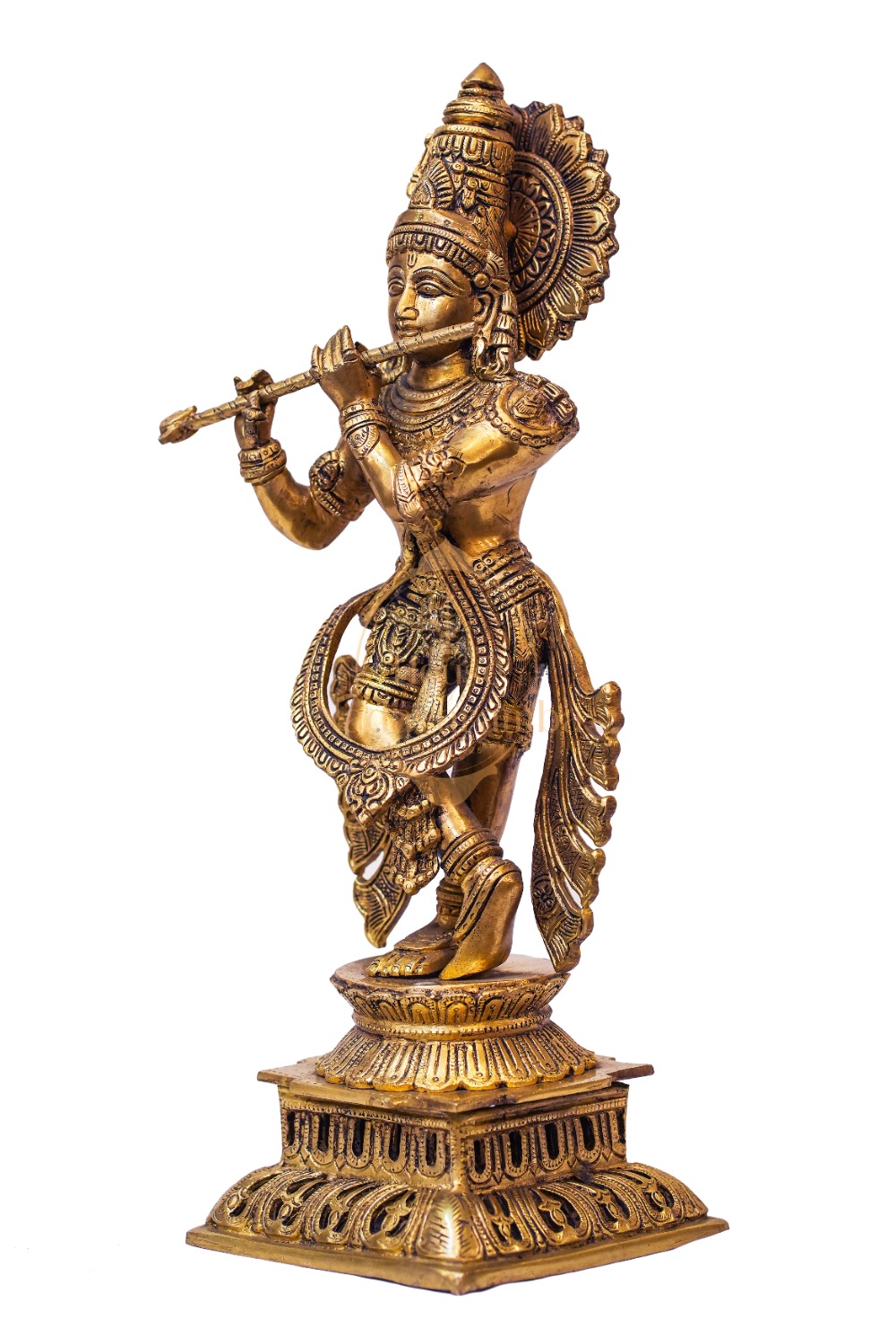 Kerala-style handcrafted Krishna idol with traditional detailing. Unique artisan finish reflects regional heritage and devotion.