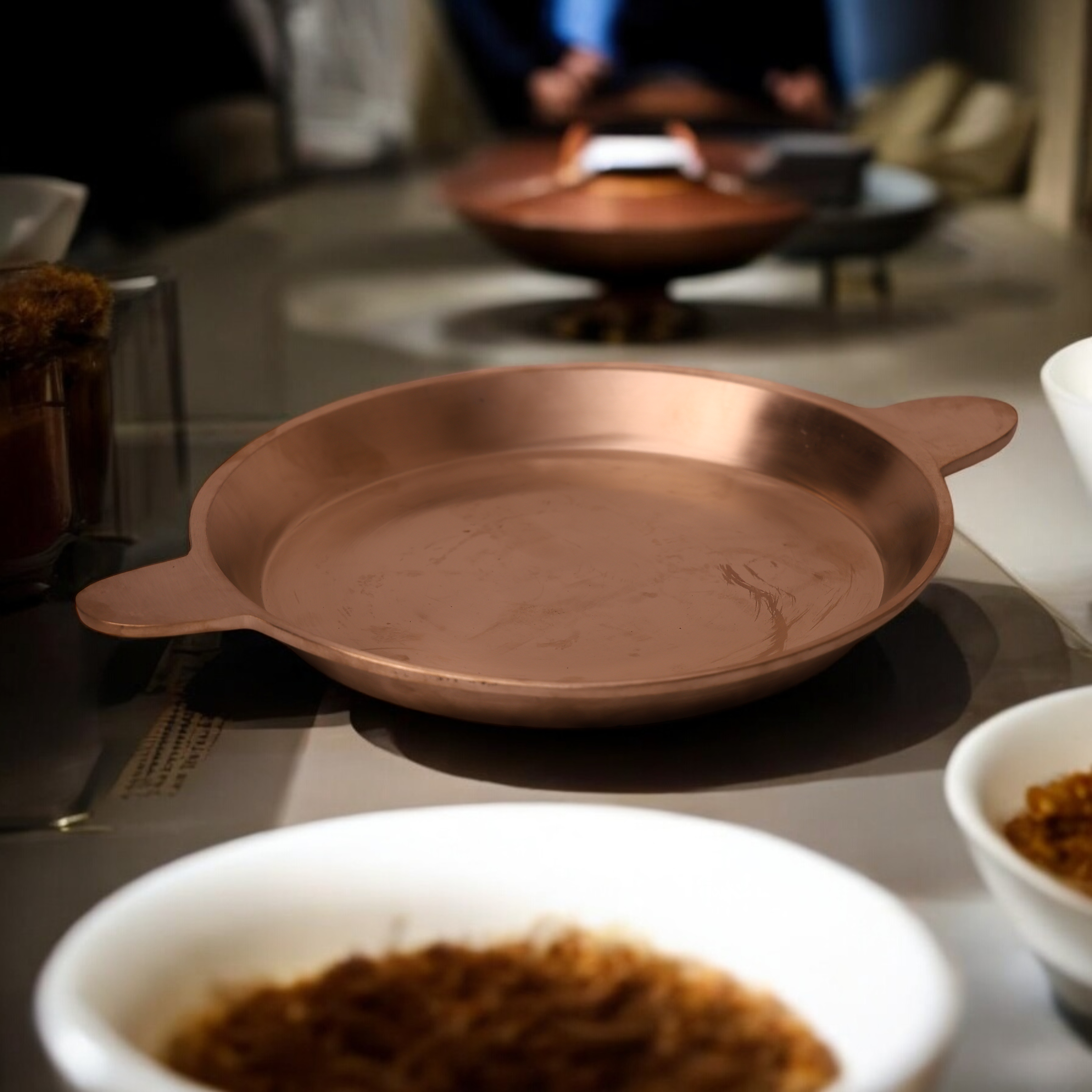 Made from high-quality bronze, this fry pan offers excellent heat conductivity and retention, ensuring uniform cooking without hotspots. Its flat bottom design makes it compatible with modern stovetops while maintaining traditional cookware benefits.