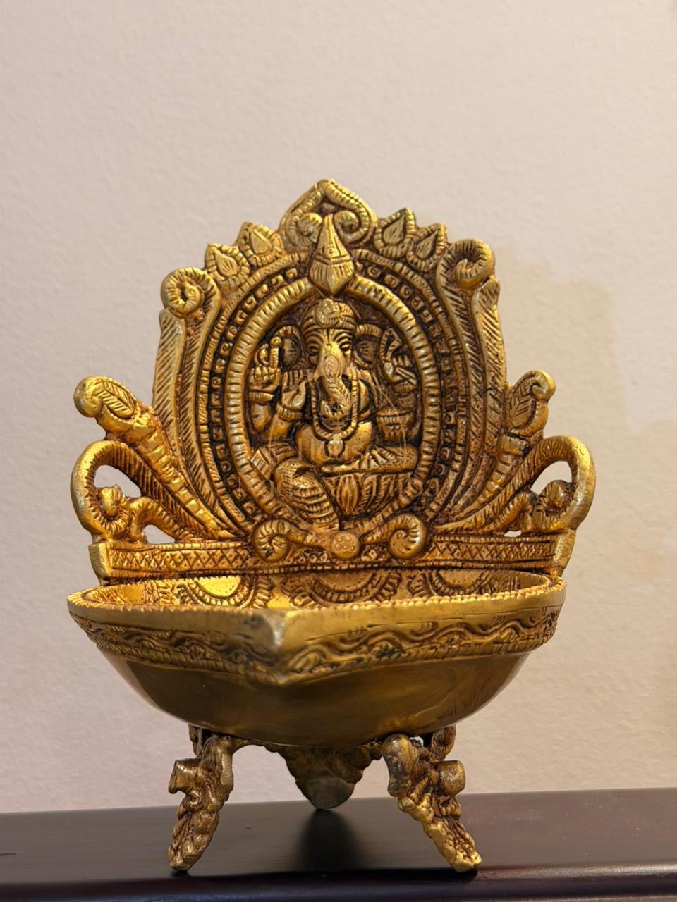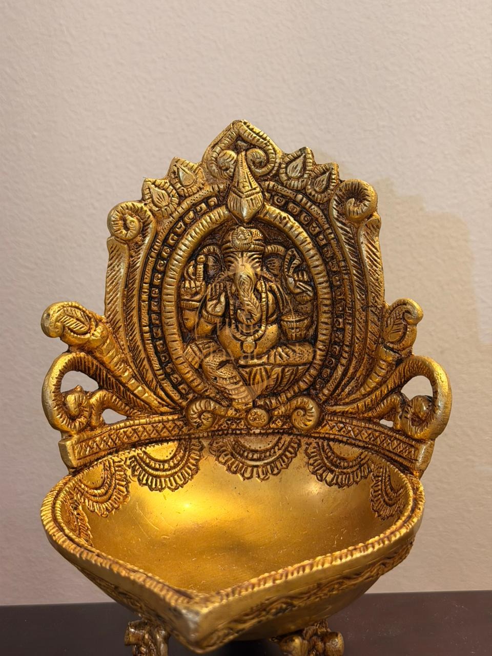 The Sri Ganesha Deepam beautifully blends this sacred symbolism with the timeless elegance of the traditional uruli bowl. At the center stands Lord Ganesha, radiating calm and divine grace, while the surrounding bowl can be filled with water, flowers, or floating diyas to create a serene spiritual display.