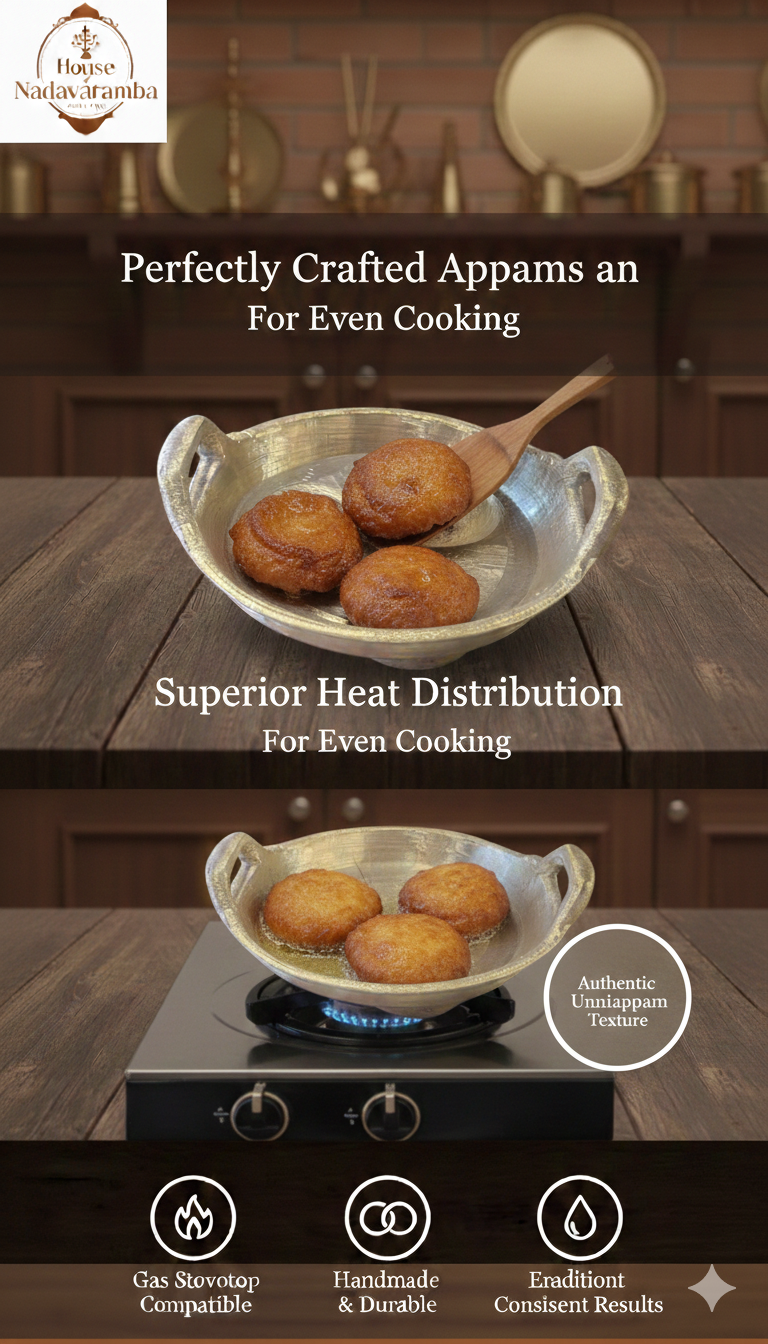At Nadavaramba Krishna Metals, our bronze appakaras combine heritage craftsmanship with practical usability, designed for traditional kitchens and modern homes alike.